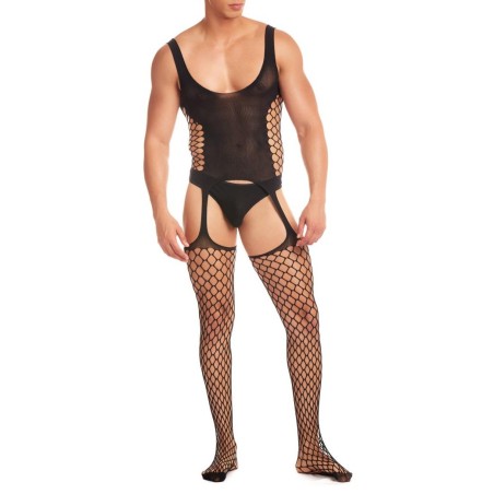 Haut débardeur et bas résille à grosses mailles.Avec un string opaque. Composition : 93% Polyamide, 7% Élasthanne