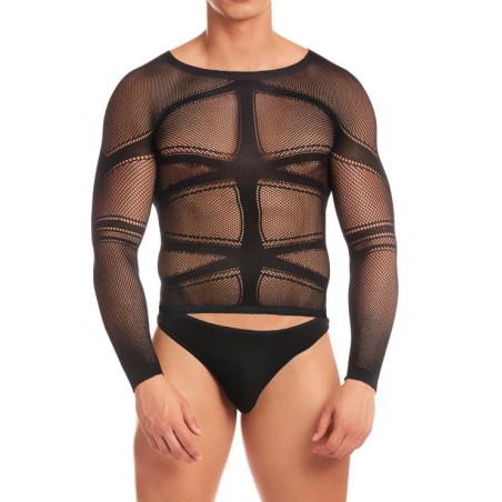 T-shirt en résille et lignes opaques.String opaque. Composition : 95% Polyamide, 5% Élasthanne