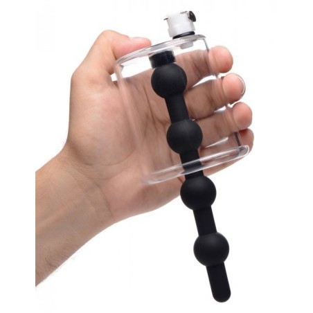 Ce cylindre pour la rose anale est complété par une tige en silicone avec une surface perlée.Le cylindre mesure 6.5cm de diamètre intérieur et 8cm de largeur.La tige mesure 17cm de longueur et 2.5cm de largeur. Elle est fabriquée en silicone. Attention: la pompe n'est pas fournie