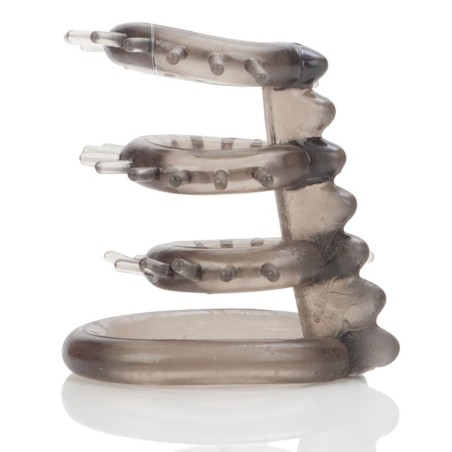 Ce sextoy est composé de 3 anneaux souples de 20mm de diamètre avec des picots souples. Ils se placent sur le pénis et apportent des sensations excitants lors de la pénétration.L'anneau principal mesure 40mm de diamètre et se place à la base du sexe. En matière souple TPR