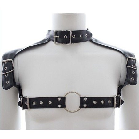 Ce harnais Optor est conçu avec une forme permettant de mettre en valeur le buste. Il a des sangles ajustables de 3.5cm de largeur.Avec un collier dont le tour de cou va de 21 à 26cm. Il est fabriqué en simili (polyuréthane)