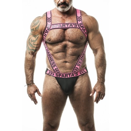 Jockstrap en néoprène noir.Bandes élastiques noires et roses qui met en valeur le buste. Composition : 80% Polyamide, 20% Élasthanne