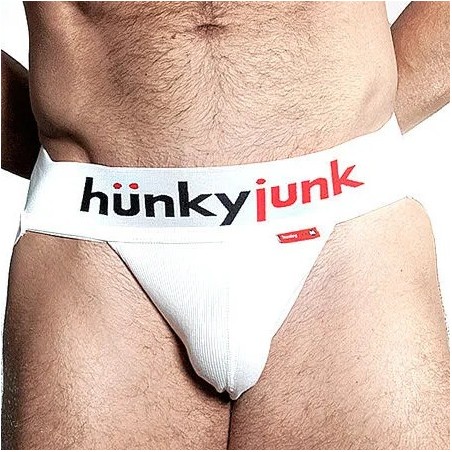 Le Jockstrap Blanc HUNKER de la marque OXJOK est conçu pour un port quotidien ou pour une occasion spéciale. Il se compose d' :  un cockring inclus une ligne de coutures blanche à l'avant une ceinture blanche avec la mention hunky junk en noir et rouge mention hunky à l'arrière Composition : 94% Coton, 6% Élasthanne