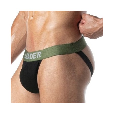 Le Jockstrap GI ARMY de la marque Leader est ici dans sa version kaki et noire.Il est réalisé avec :la ceinture large de 4 cm portant le nom de la marquele tissu coton côtelé apportant un excellent confortles élastiques latéraux qui remontent les fesses.Composition : 94% Coton, 6% Élasthanne.