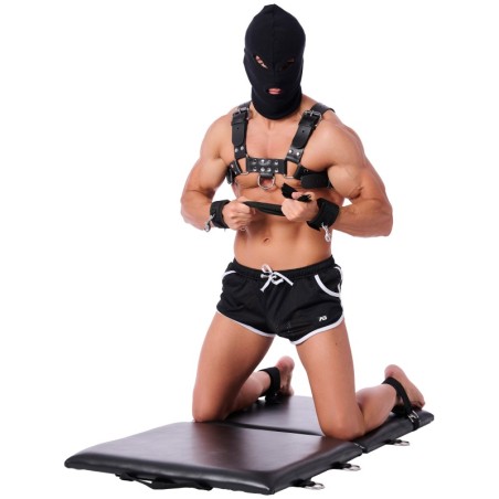Cet accessoire BDSM est composé de 2 volets rembourrés formant un matelas transportable. Idéal pour monter sa playroom n'importe où et facilement. Il est accompagné des liens en nylon (x8) + un masque.Avec 10 anneaux en métal sur les bords. Dimension d'un volet : 60 x 60cm. Épaisseur 4cm. En bois et PVC imitation cuir