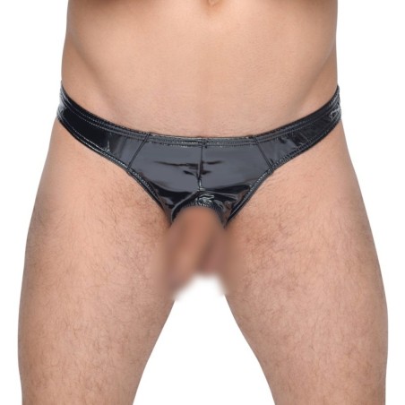 Matière effet vinyle.Ouverture à l'avant pour passer le sexe. Composition : 94% Polyester, 6% Élasthanne, revêtement polyuréthane