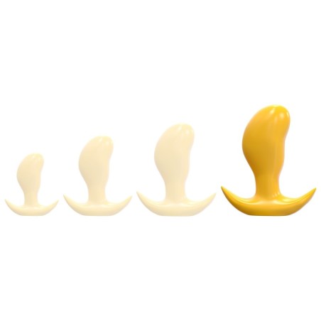 Le plug Frijo XL jaune est réalisé avec une longueur insérable de 18cm. La largeur maximale est de 8cm.Sa surface est lisse. La base est incurvée pour une bonne prise en main et permettant de la garder inséré plus facilement. En TPR