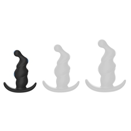 Stimulateur prostatique à la forme en spirale avec une largeur de 1.2 à 2.8 cm. Longueur insérable de 8 cm, en 3 parties. En silicone rigide, avec une base incurvée.