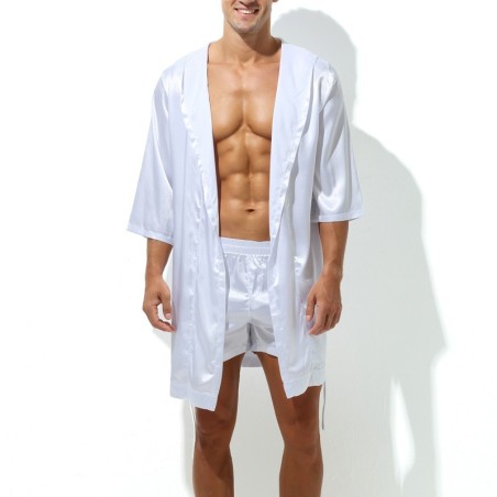 Taille L - Peignoir effet satiné LONG SLIT Blanc